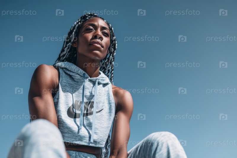 Модные модницы демонстрируют смелые стили и шикарные солнцезащитные очки, установленные на красивом чистом небе над ними
