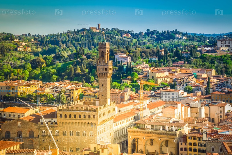 Флоренция городской пейзаж с дворцом Веккио в солнечный день, Тоскана, Италия