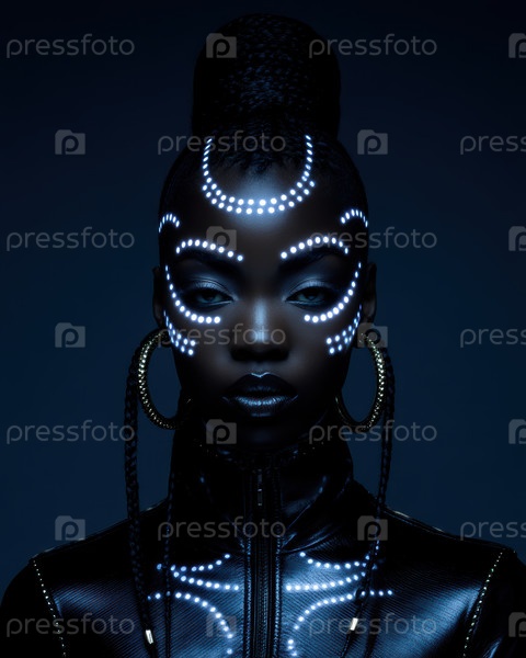 Потрясающий и поразительный портрет моды с смелым макияжем и блестящими ювелирными изделиями, которые захватывают зрителя