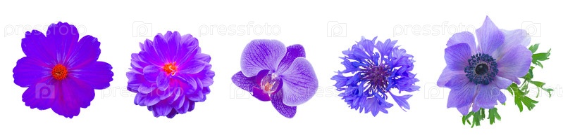 Один синий цветок анемоны, изолированный на белом фоне