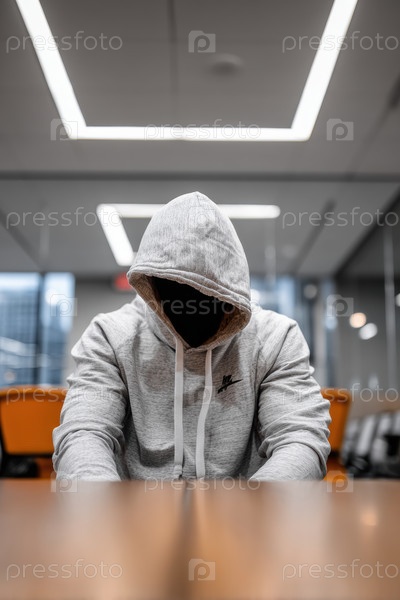 Человек в толстовке сосредоточен, участвуя в встрече с коллегами и сотрудниками