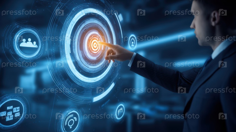 Бизнесмен, использующий передовые цифровые технологии для повышения производительности и стимулирования будущего роста