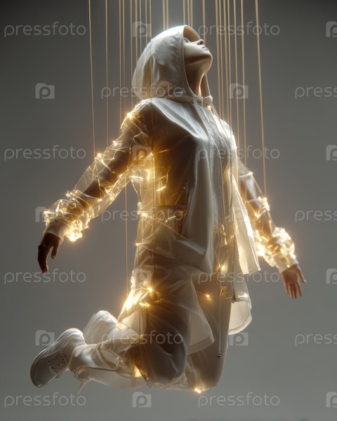 Иллюминированная фигура в движении Потрясающее видение современной уличной одежды Искусство и выражение культуры