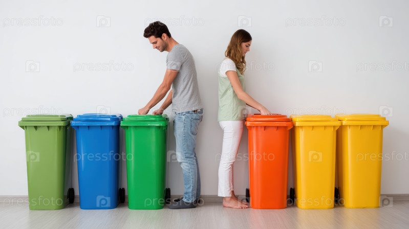 Индивидуумы активно сортируют и категоризируют отходы в ярких контейнерах для переработки