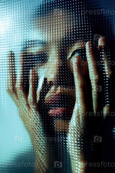 Ближайший снимок лица, частично скрытого блестящими капельками воды, подчеркивает глубокое эмоциональное отражение