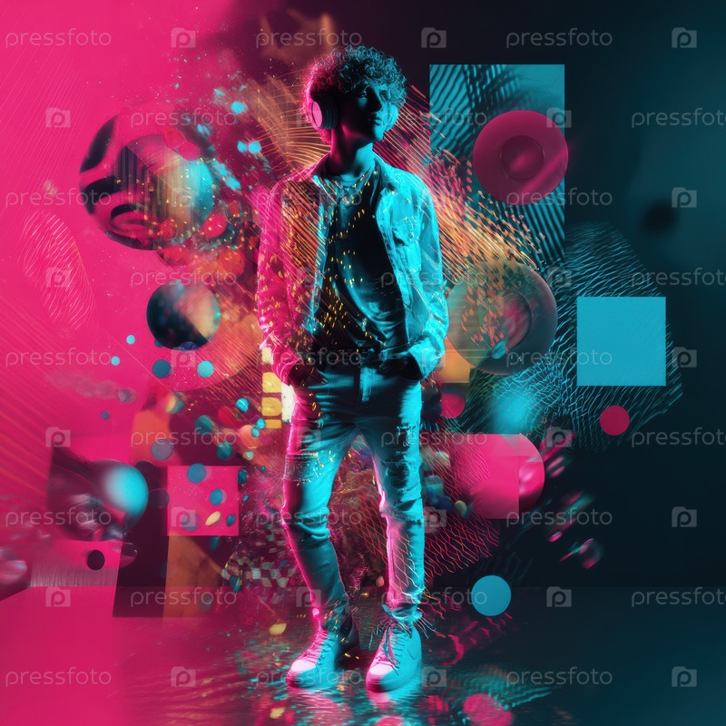 Вибрирующий и увлекательный портрет современного человека на фоне художественного и абстрактного пейзажа