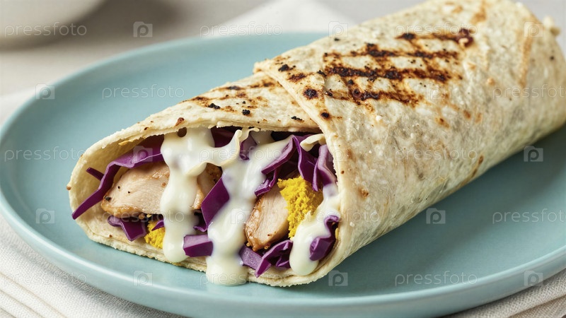 Упаковка из жареной курицы с красной капустой и кремовым соусом