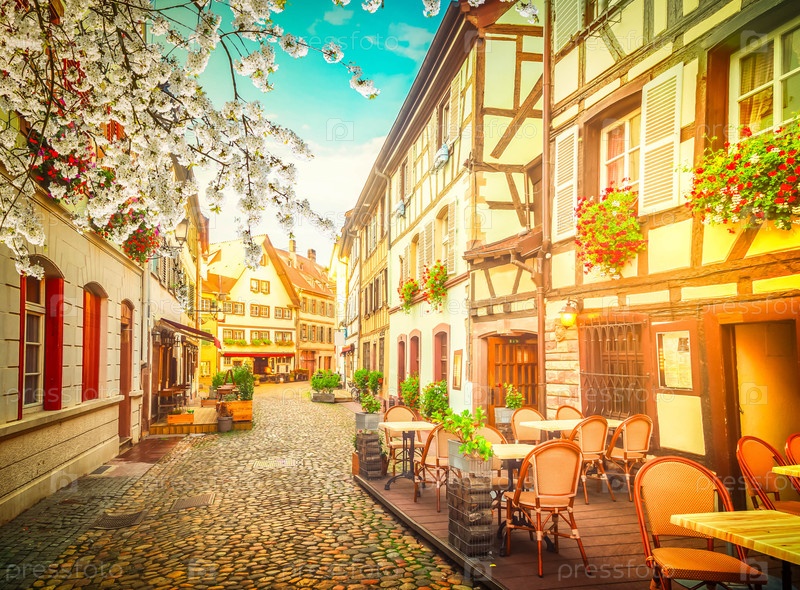 Улица Petit France средневекового района Страсбурга на весенней улице, Эльзас Франция