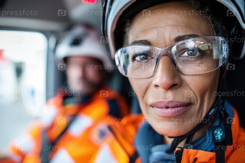 Близкий план решительного спасателя в действии, демонстрирующего мужество и настойчивость в сложных условиях