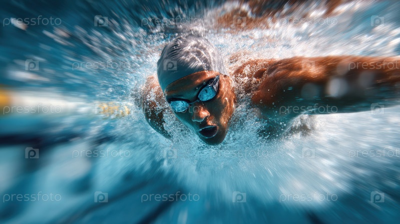 Динамический подводный плавательный снимок эффективно захватывает скорость и интенсивную фокусировку в окружении бассейна