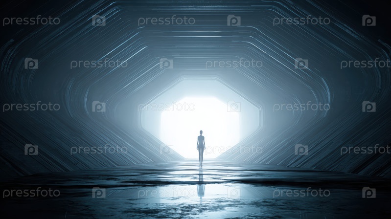 Эфирный свет в продвинутом футуристическом туннеле, вызывающий удивление и исследование