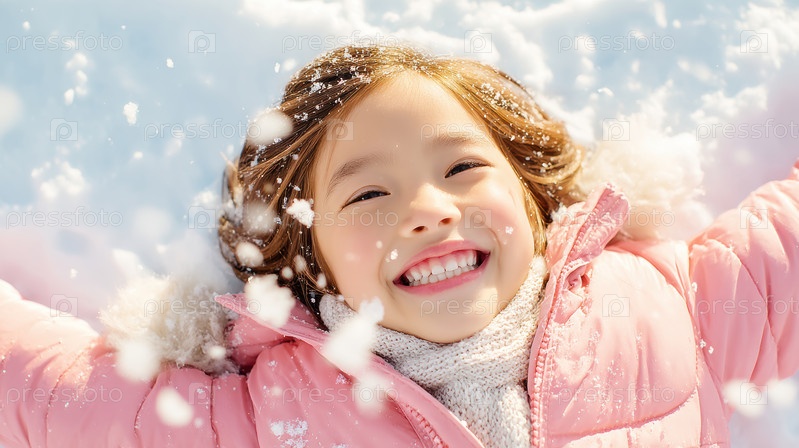 Веселый ребенок, с удовольствием играющий в мягком снегу в красивый зимний день, наполненный весельем и радостью