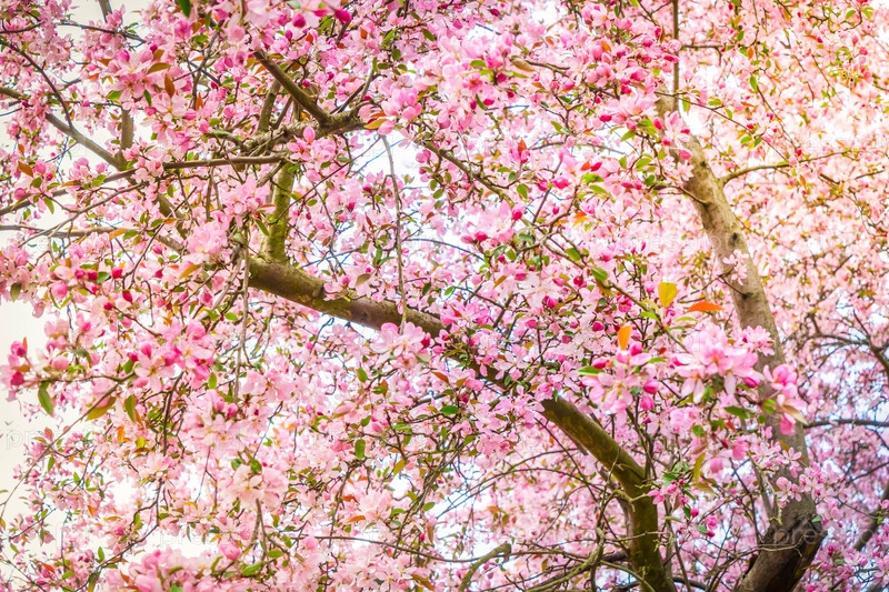 Вишневое дерево цветущее вблизи, розовое облако цветков