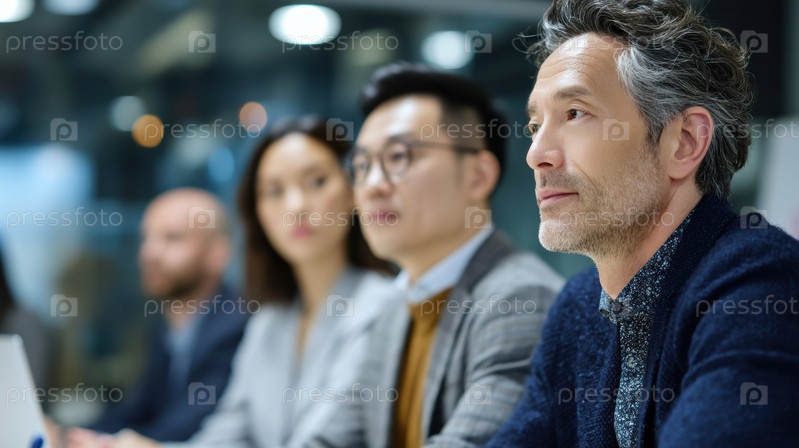 Группа бизнес-профессионалов собирается на встречу, активно участвует в целенаправленной дискуссии и сотрудничестве