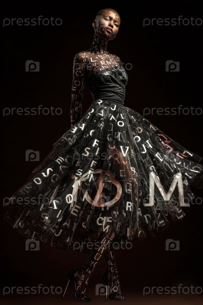 Модель элегантно позирует в потрясающем черном тюльском платье, которое прекрасно подчеркивает современный дизайн и инновационный стиль