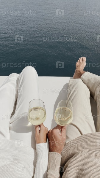 Спокойный момент празднования с вином у бирюзовой воды, идеально подходит для летней атмосферы и отдыха