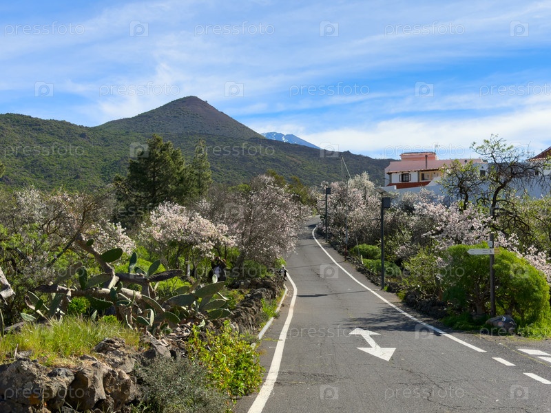 Розовое цветение миндального дерева, весенний праздник в Сантьяго-дель-Тейфде, Тенерифе