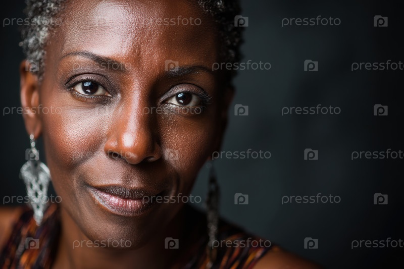Профиль, демонстрирующий уверенную в себе женщину с серыми натуральными волосами на темном фоне
