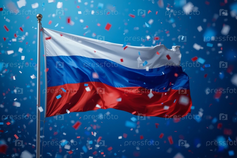 Концепция празднования Дня России 12 июня.Государственный флаг Российской Федерации.Русский триколор с красочными конфетти