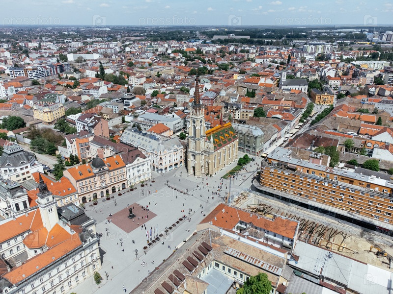 Полет беспилотника над центром и центральной площадью города Нови-Сад, Сербия