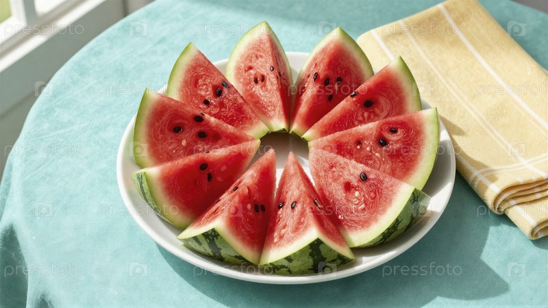 Вкусные свежие кусочки арбуза на тарелке