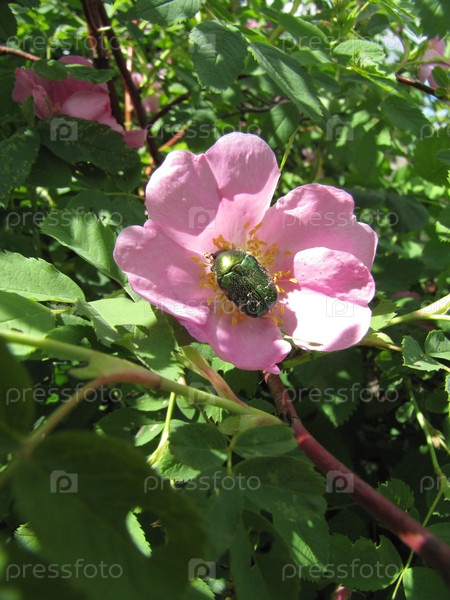 Майский жук на цветке шиповника