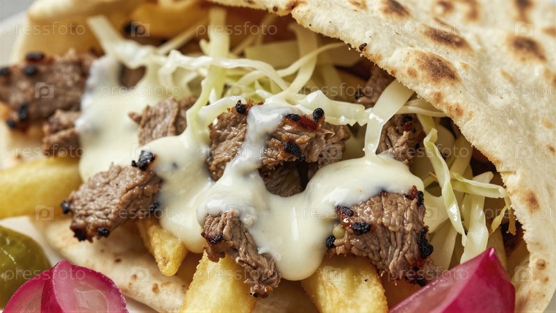 Пикантный говяжий донер-кебаб с капустой и кремовым соусом