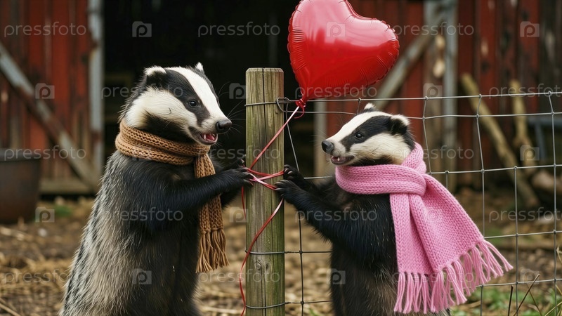 Валентинские барсуки делятся воздушным шаром с сердцем