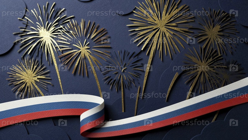 Праздничные фейерверки с лентой на темном фоне