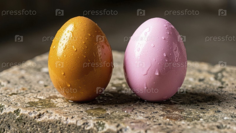 Два красочных пасхальных яйца на каменной поверхности
