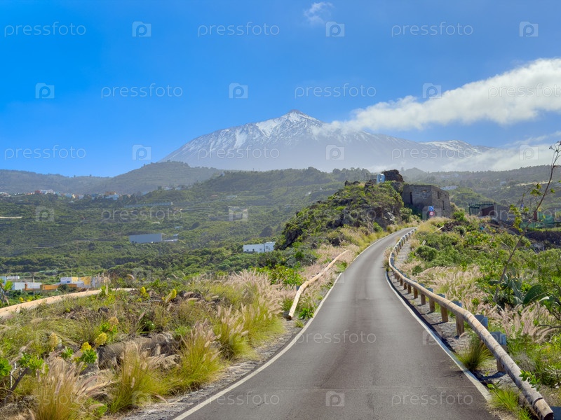 Дорога в экзотической долине вулкана Тейде, Тенерифе, Испания