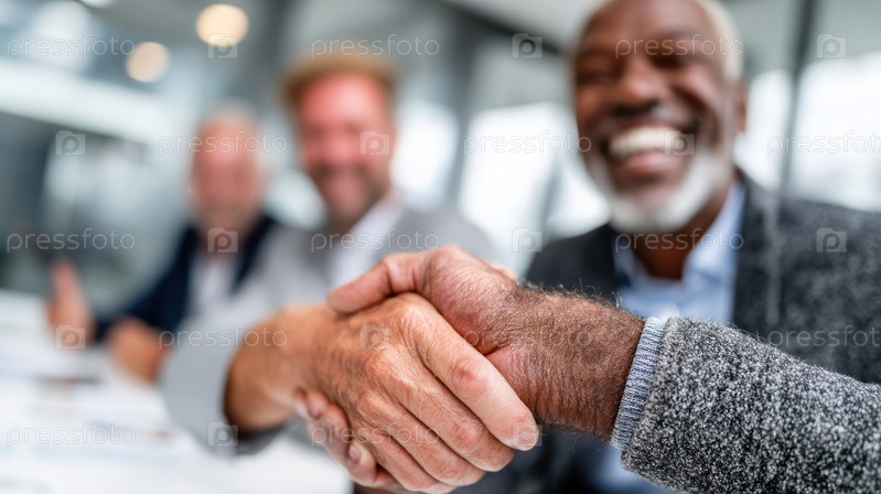Два профессионала обмениваются рукопожатием, демонстрируя сотрудничество и успех в корпоративной среде