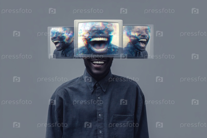 Увлекательная иллюстрация смеха и эмоций, сливающихся в динамичные цвета, создает потрясающий визуальный эффект