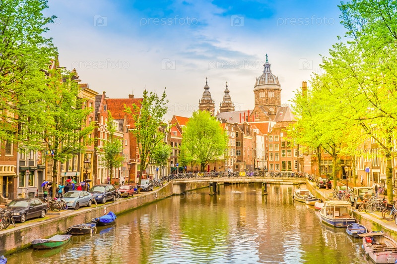 Церковь Святого Николая, старый городской канал, Амстердам, Нидерланды