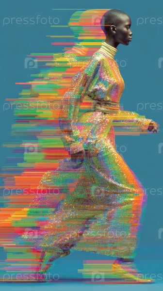 Живая сцена с потрясающей моделью в блестящем, привлекательном платье подчеркивает ее скорость и элегантность