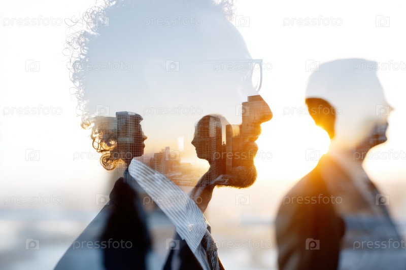 Силуетированные профили красиво выделяются на фоне красочного и яркого заката, усиленного впечатляющим эффектом боке