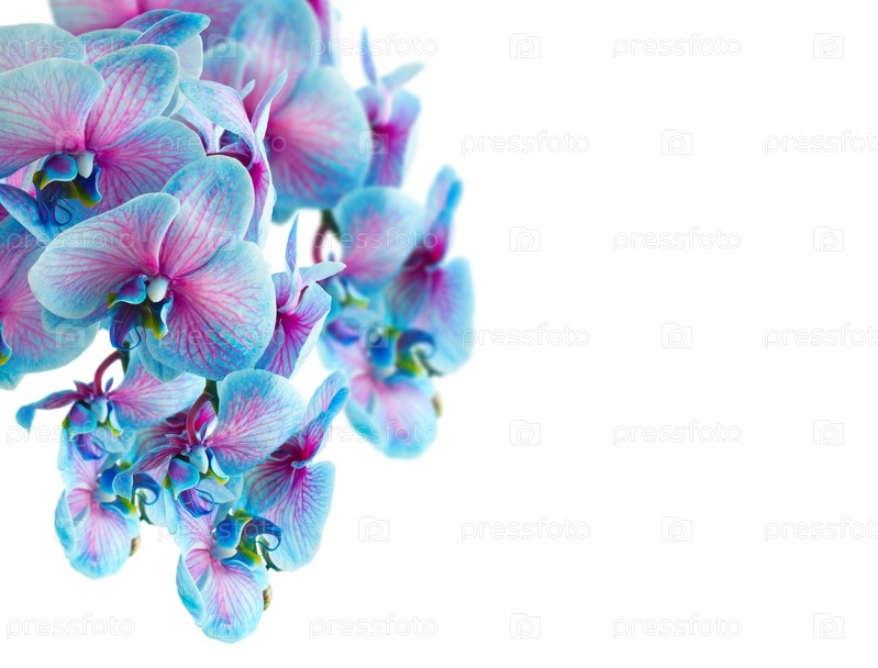 Ряд свежих синих цветов орхидеи изолирован на белом фоне