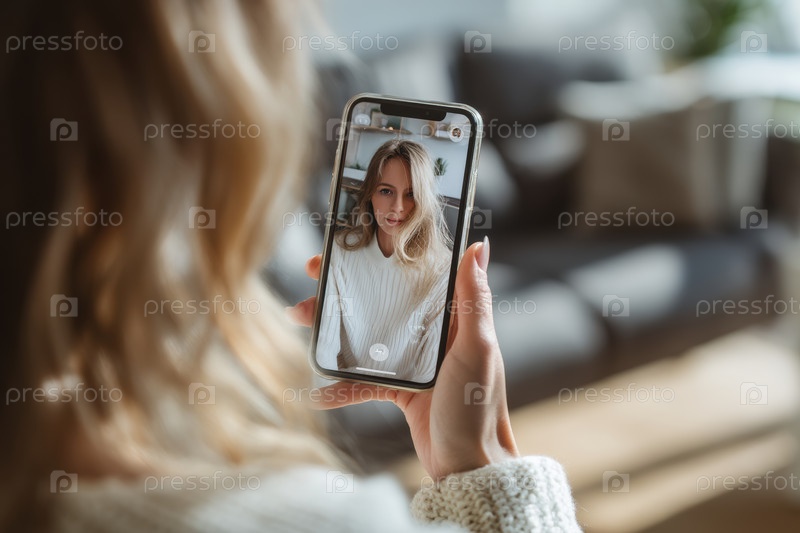 Молодая женщина взаимодействует со своим смартфоном, демонстрируя чистый и современный пользовательский интерфейс в яркой обстановке