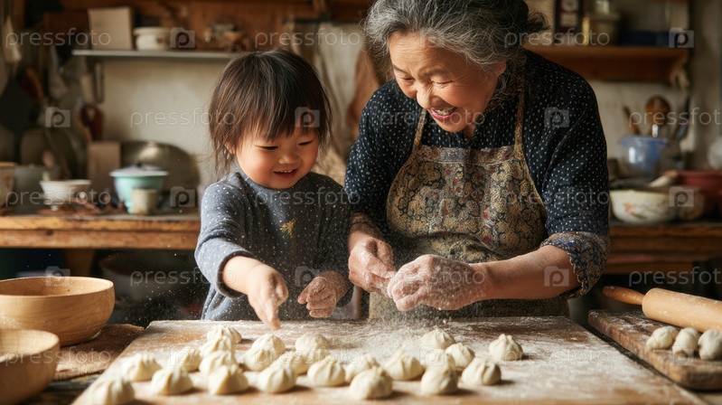 Веселые и восхитительные моменты на кухне Бабушка и внучка делают пельмени вместе с любовью