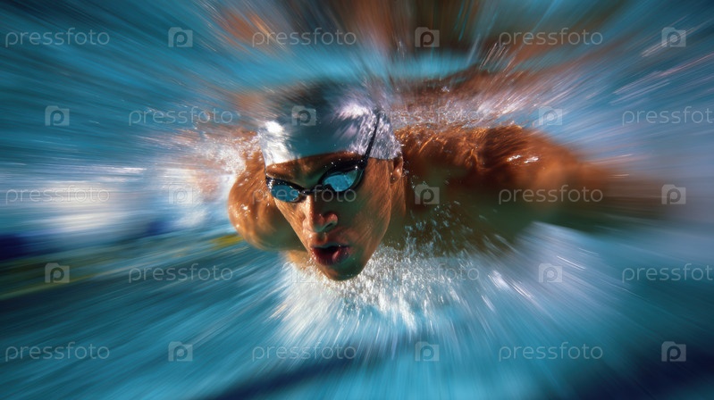 Динамический подводный плавательный снимок эффективно захватывает скорость и интенсивную фокусировку в окружении бассейна