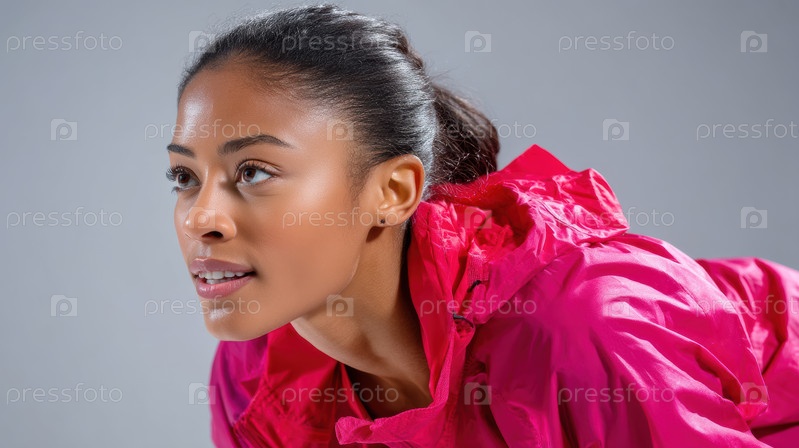 Сосредоточенная и решительная спортсменка, бегущая вперед с непоколебимой решительностью и интенсивностью A