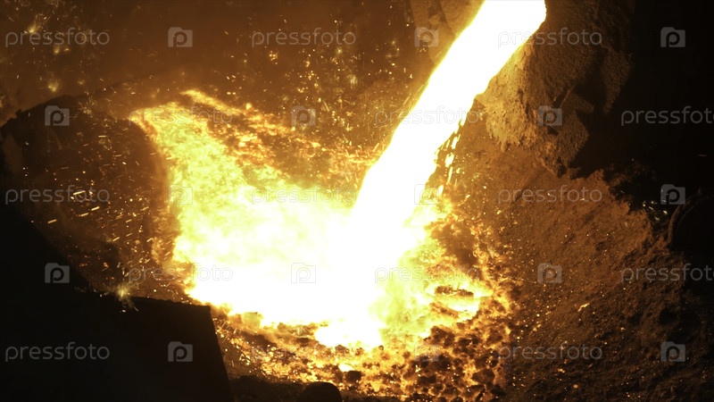 Жидкий металл из высокой печи, жидкое железо из ложки на сталелитейной фабрике
