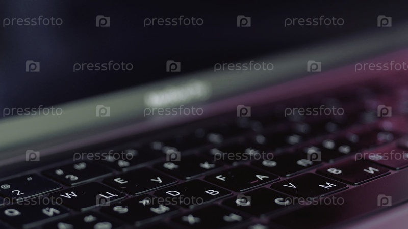 Серебряный ноутбук с черными деталями клавиатуры. Ближайший снимок нового современного ноутбука, концепция технологического прогресса и технологий