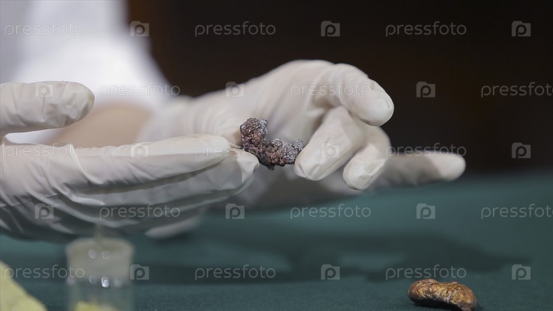Ученый или археолог, держащий камни или минералы в руках