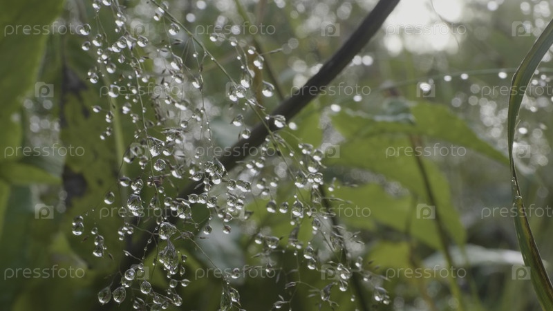 Большие капли росы на траве