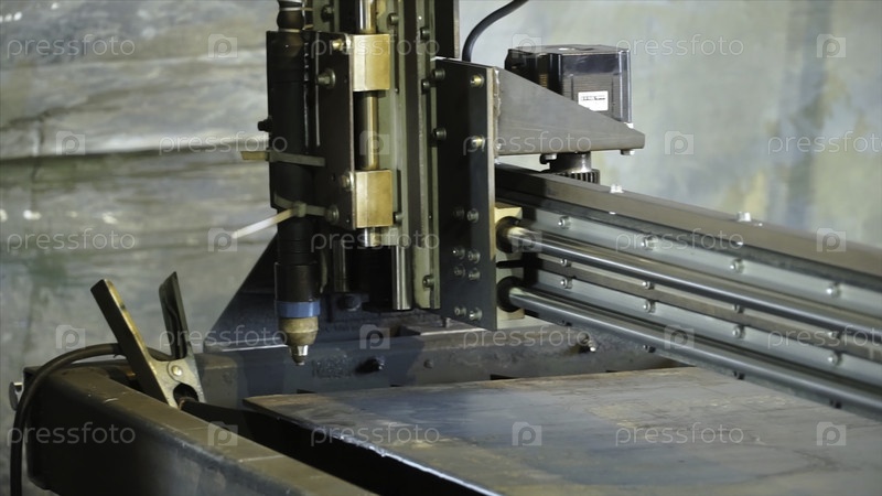 Лазерная плазменная резьба металла современной технологией в процессе на металлообрабатывающем производственном заводе мужчина