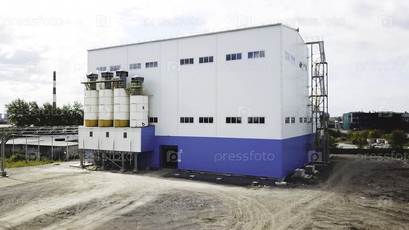 Вид сверху на производственное здание или склад. Скриншоты. Современное здание для промышленного производства или хранения в качестве склада