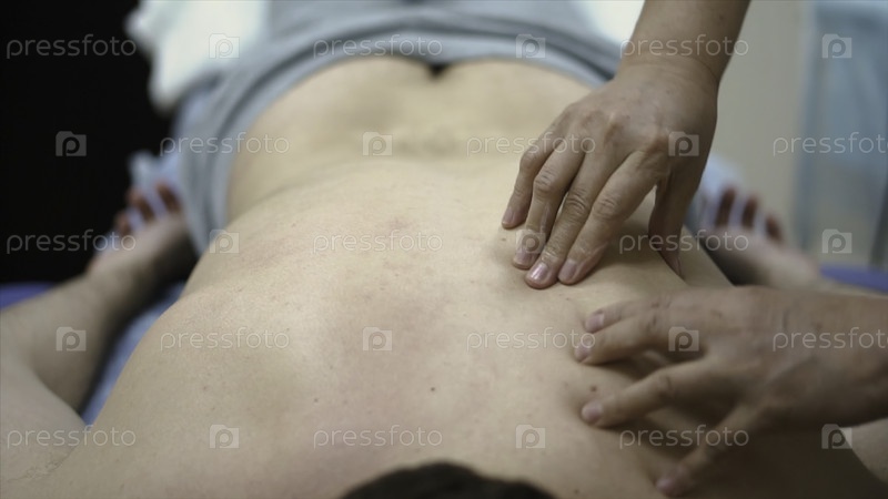 Профессиональный массажист по восточной технике накачивает мышцы мужских лопаток