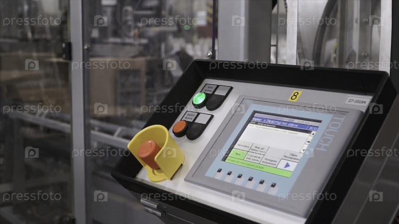 Техническое отображение на панели управления с электрическими устройствами. Клип. Электрическая панель управления. Интерьер автоматической линии производства кормов. Контрольная панель оборудования для автоматизированных производственных машин