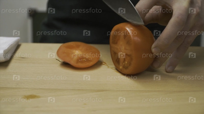 Клип. концепция приготовления пищи, еды и дома - ближайший снимок мужского ручного резания перца на доске для резки в домашних условиях. близкий снимок мужского ручного резания томата